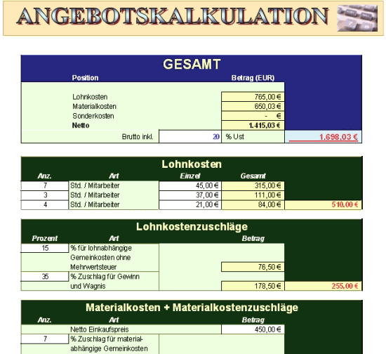 Mittels verschiedener Kalkulationen kann man Angebote für Handelswaren und Dienstleistungen erstellen: