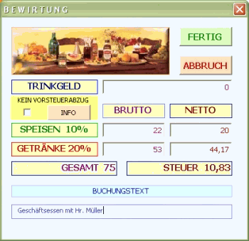 Bei der Verbuchung von Geschäftsessen werden diese automatisch auf die entsprechenden Sachkonten aufgeteilt.