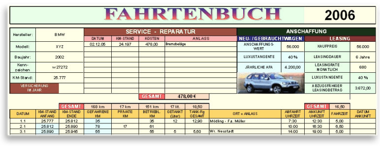 Das seitens des Finanzamtes immer häufiger verlangte Fahrtenbuch kann ebenso geführt werden: