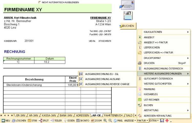 Kundendaten werden automatisch eingefügt und Auftragsdaten können vom Angebot bzw. dem Lieferschein automatisch in die Ausgangsrechnung übernommen werden: